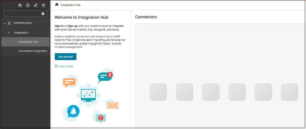 Integration Hub allows you to connect Foglight with other systems you rely on, such as ServiceNow, Jira, and more. Once enabled, alerts stay synchronized across platforms, providing a seamless and reliable experience.